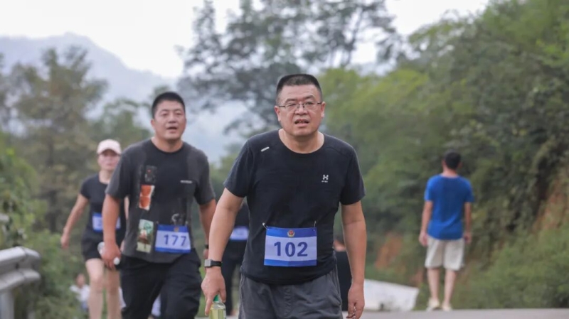 蜿蜒陡峭的山路,是对体力与意志的双重考验。但山路再陡,也挡不住他们矫健的步伐。队员们你追我赶,又不忘相互鼓劲。“加油!”“坚持住!”此起彼伏的助威声,为秋日的山林增添了无限生机。跃动的藏蓝身影,为苍翠山林增添了一道最美“警”色。