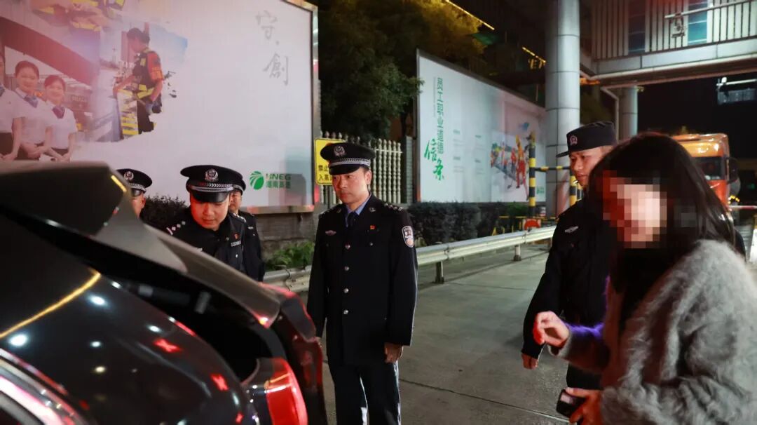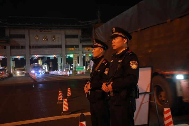 12月2日晚,市公安局党委副书记、分管日常工作的副局长肖文奇(左二)在幸福渠高速收费站临时检查卡点检查车辆