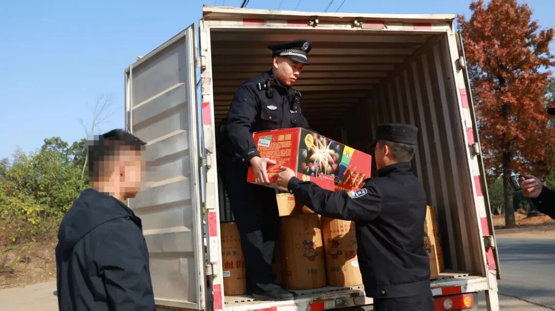 12月3日下午,资阳公安分局民警现场查处一起非法运输烟花爆竹行为