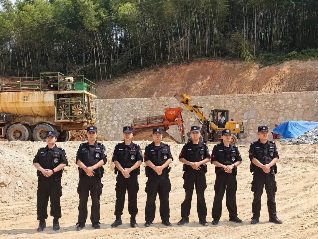安化县公安局特警大队在抽水蓄能电站工地开展巡逻,为工程建设保驾护航