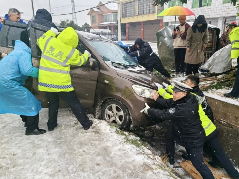 警民同心温暖民心,民警坚守“人民至上”理念,主动提供救助帮扶。1月20日,沅江市234国道一辆小车翻入排水渠,交警、特警联合村民合力施救,成功救助驾驶员,合力将车辆抬出。1月20日20时许,安化梅城派出所接到群众报警求助,称一名老人在雨雪中独自行走,且无法正常交流,民警迅速赶到现场,在确认老人身体状况和身份后,梅城派出所与乐安派出所协力将老人护送回家中。寒潮期间,民警还帮助受困群众推车、护送老人儿童过马路,用一件件暖心事传递公安温度。