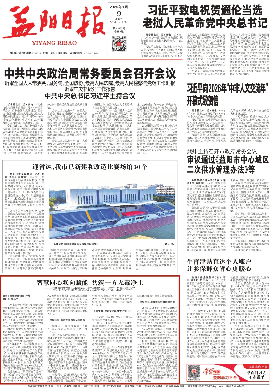 1月9日《益阳日报》第A01版刊发