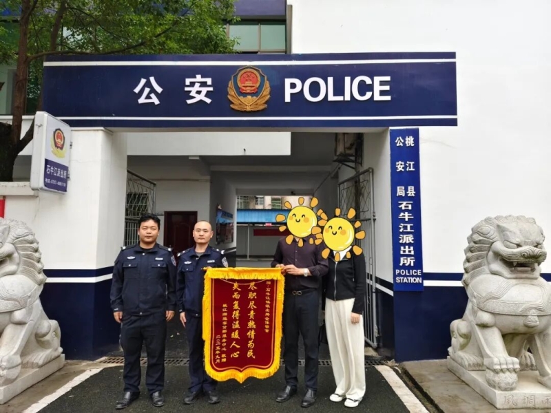 9月24日下午,彭女士将一面印有“尽职尽责热情为民 失而复得温暖人心”的锦旗送至桃江县公安局石牛江派出所民辅警手中,对民辅警高效帮助找回丢失包裹表示衷心感谢。